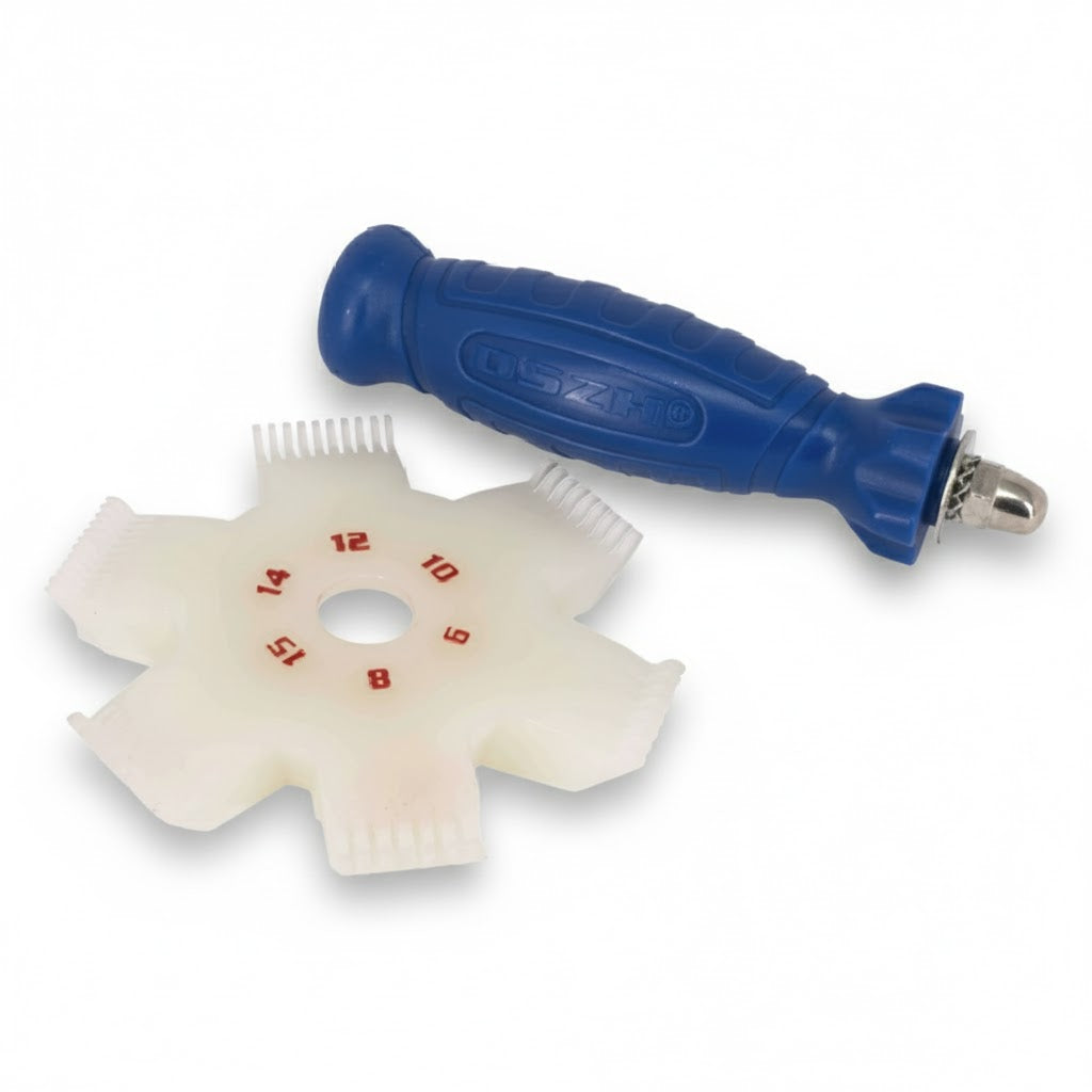 El Peine Aletado de Plástico de ERO es la herramienta definitiva para el enderezado y limpieza de las aletas de aluminio en serpentines de refrigeración y aire acondicionado. Su diseño multifuncional permite corregir deformaciones que obstruyen el paso del aire, garantizando que su equipo recupere su capacidad de intercambio térmico original y reduzca el esfuerzo del compresor.